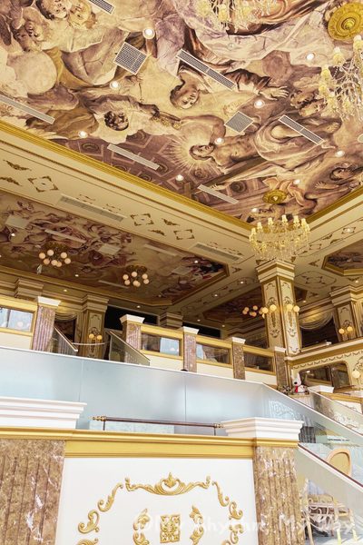 リサとガスパールタウンのメインレストラン「レーヴ サロン・ド・テ」は、まるでパリの劇場に迷い込んだようなおしゃれ空間。