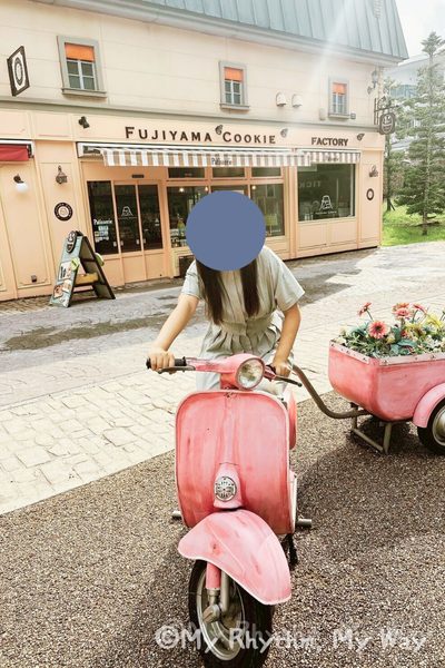 まずおすすめしたいのは「FUJIYAMA COOKIE」の前にあるピンクのバイクと荷台。